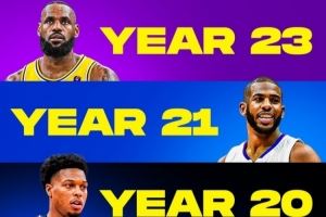 球龄18年+老将:詹姆斯23年 保罗21年 杜兰特/威少/乐福18年