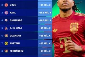 8、埃兹奎尔-费尔南德斯(勒沃库森):+1300万欧元